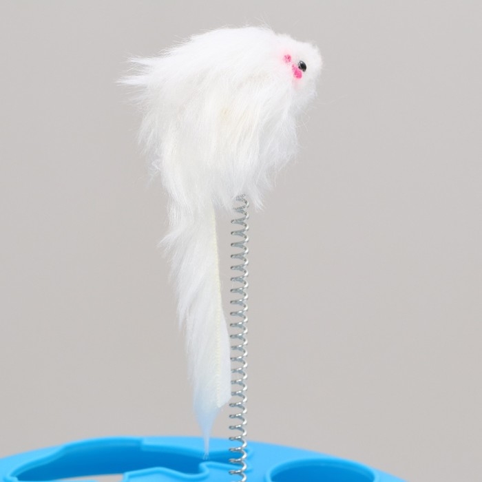Игрушка для кошек "Загадочный круг - Рыбки", мышь на пружине и шарик, 23 х 7 см, голубая/серая 79161