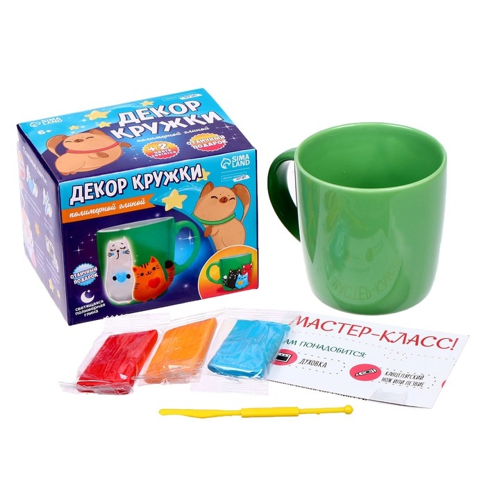С этим набором вы сможете создать оригинальную кружку с объёмным изображением из полимерной глины.