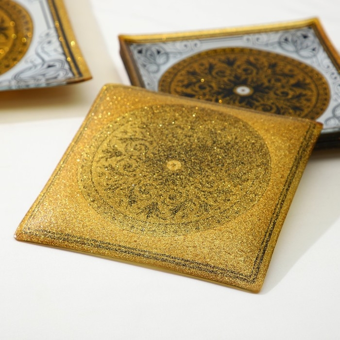 Набор столовый «Арабеска», 7 предметов: 30×30 см - 1 шт, 18×18 см - 6 шт, цвет золотой, серый