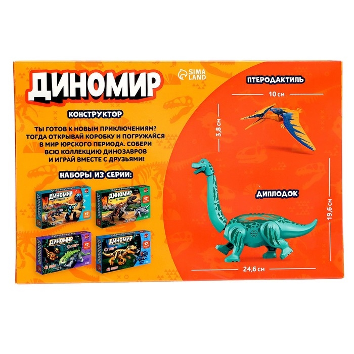 С конструктором «Диномир» ребёнок соберёт подвижную модель динозавра со звуковыми эффектами и окунётся в захватывающий мир доисторических гигантов!