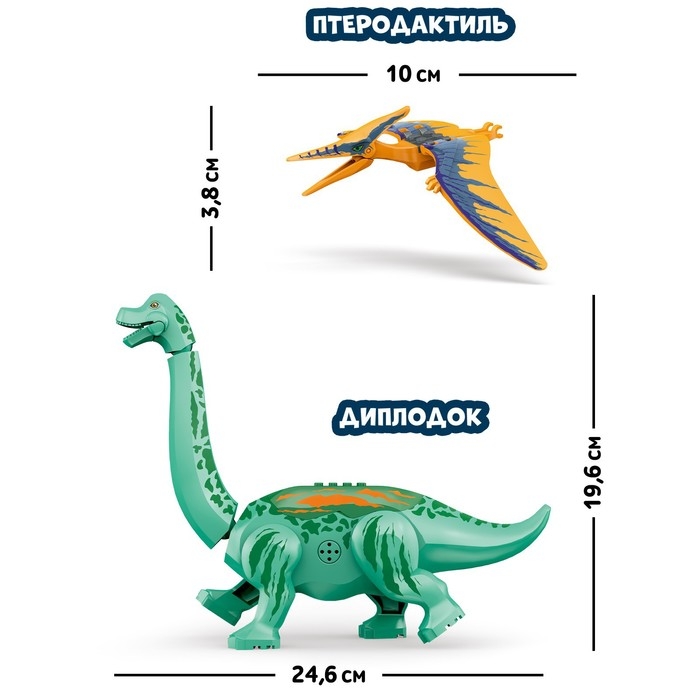 Конструктор «Диномир», 19 деталей, бронтозавр и птеранодон, звук