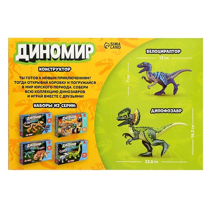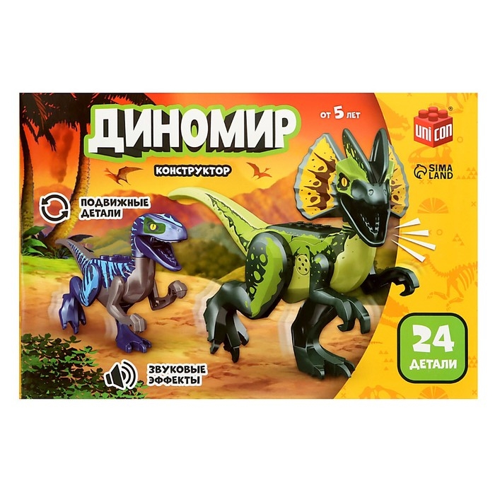 Конструктор «Диномир», 24 детали, велоцираптор и тираннозавр, звук
