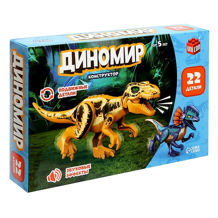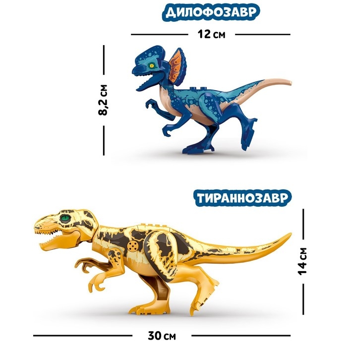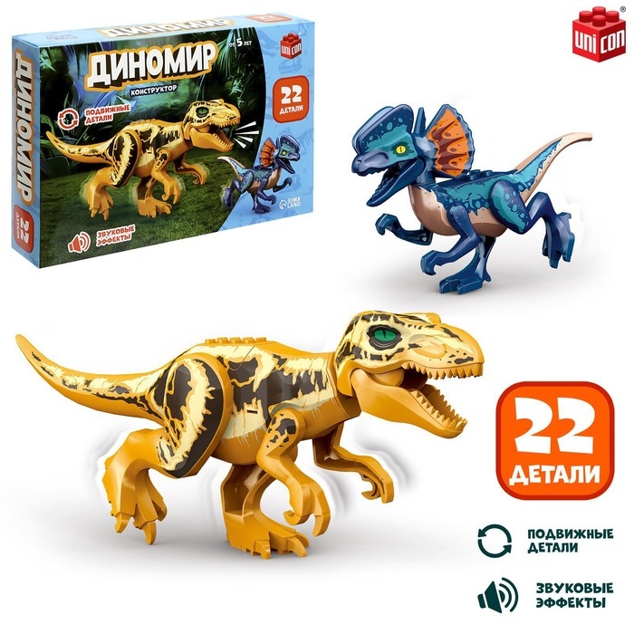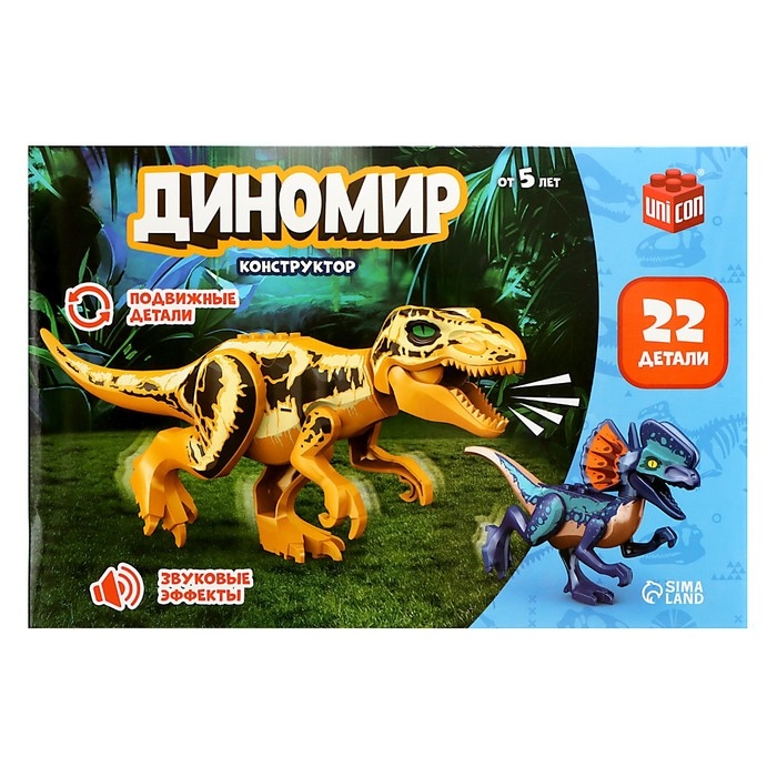 Конструктор «Диномир», 22 детали, тираннозавр и велоцираптор, звук