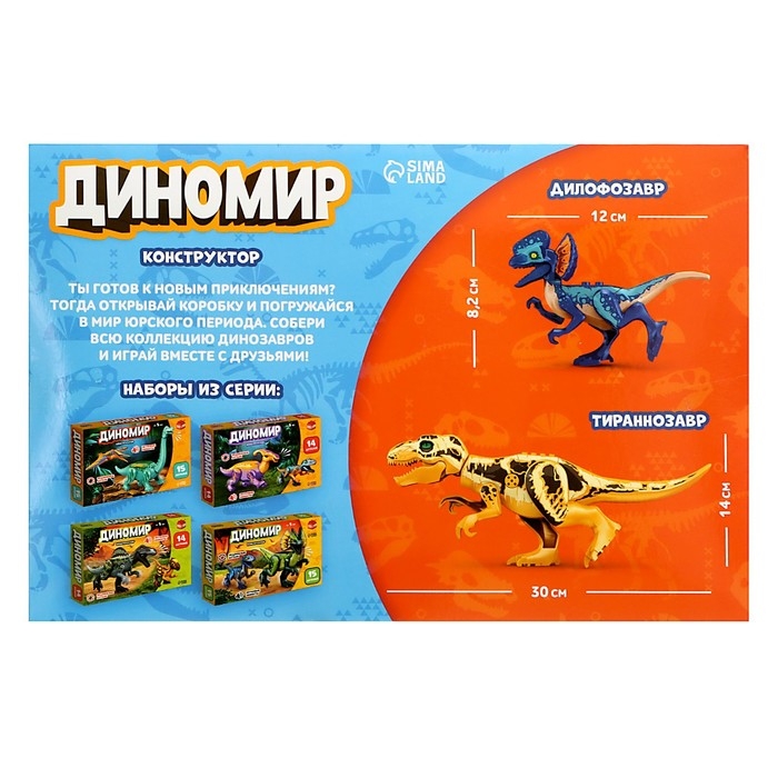 Конструктор «Диномир», 14 деталей, тираннозавр и паразауролоф, звук