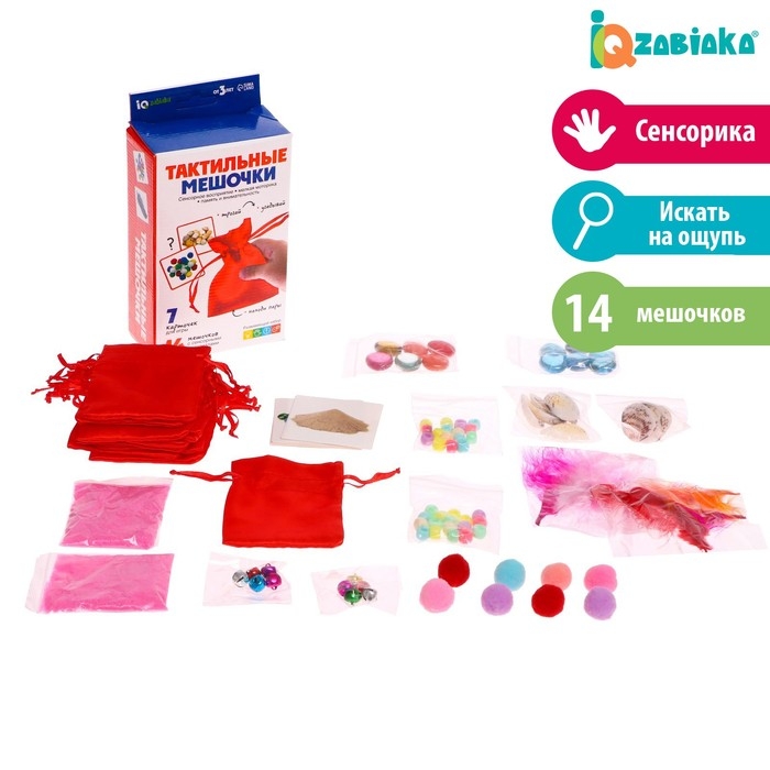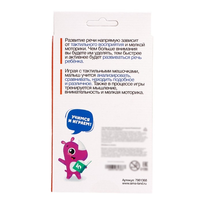 Развивающий набор «Тактильные мешочки» включает в себя разные элементы, с помощью которых вы сможете в игровой форме потренировать мелкую моторику и речь малыша.
