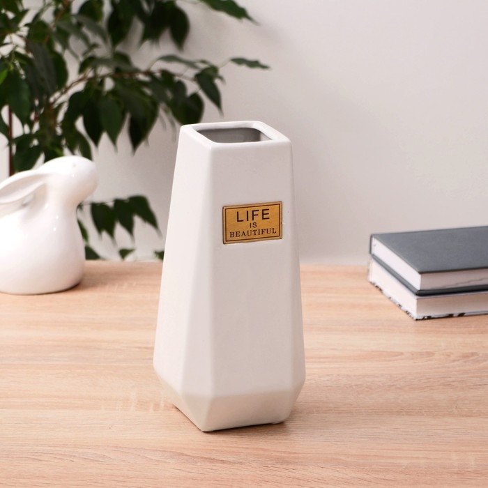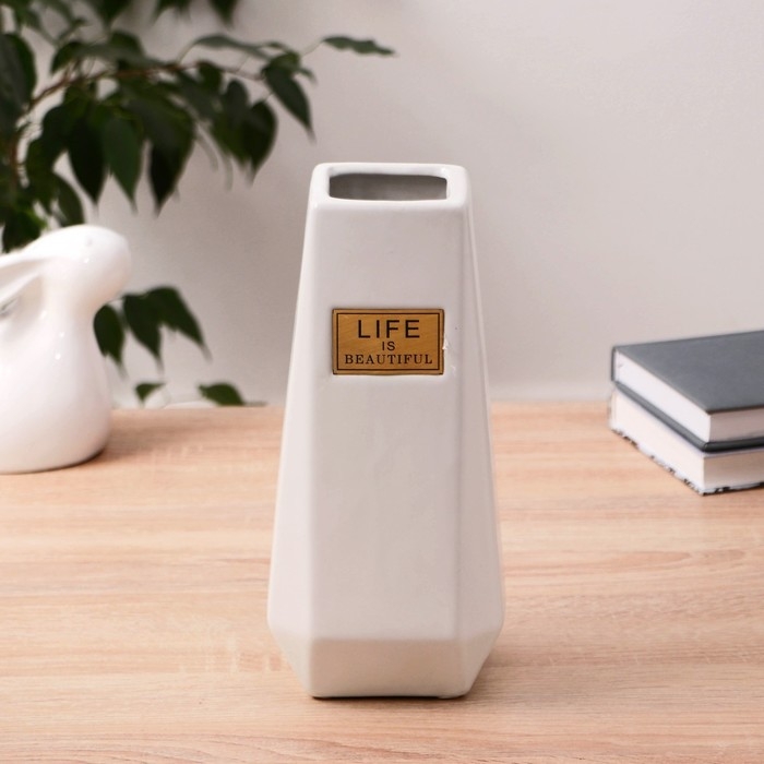 Ваза керамика "Жизнь прекрасна" 11х24 см, белый