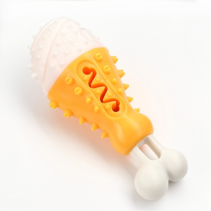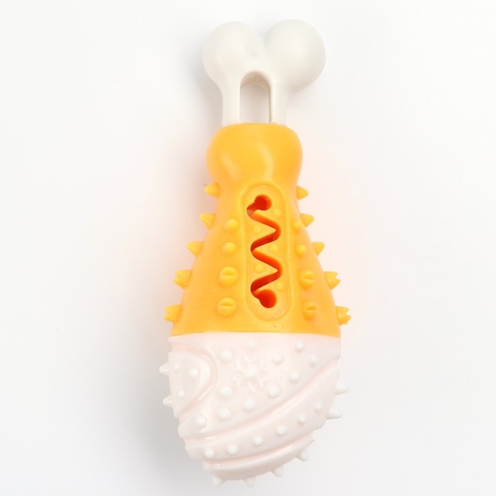 Игрушка под лакомства для собак "Голень" Пижон Premium 17 см, TPR+нейлон, желтая/белая