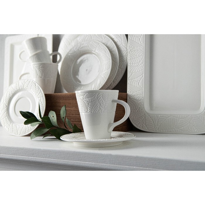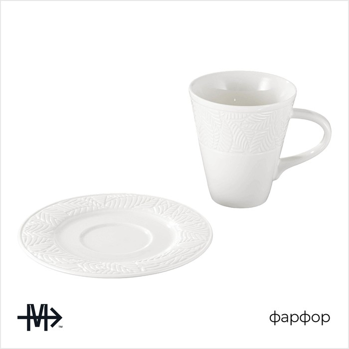 Чайная пара Magistro OliveQueen, 220 мл, 15×15 см, фарфор, белая