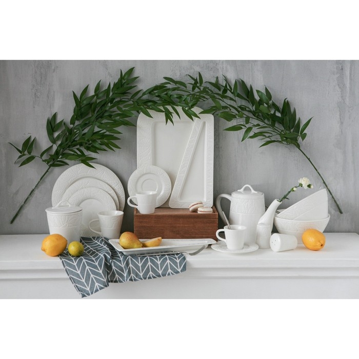 Посуда Magistro серии Сrotone – это безупречно изящная коллекция посуды из белоснежного фарфора, достойная украсить даже королевский стол. Традиционная форма изделий остается всегда актуальной и выглядит благородно. Рельефный узор в виде листьев выглядит особенно утончённо и придает посуде индивидуальности. Посуда Magistro Сrotone идеально впишется в любой современный интерьер!