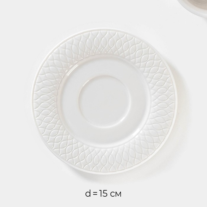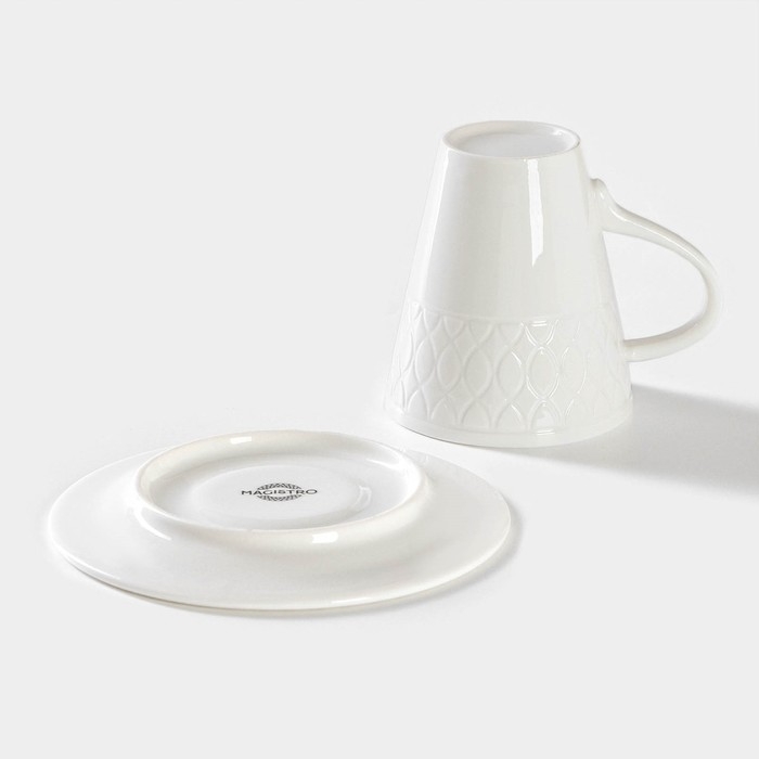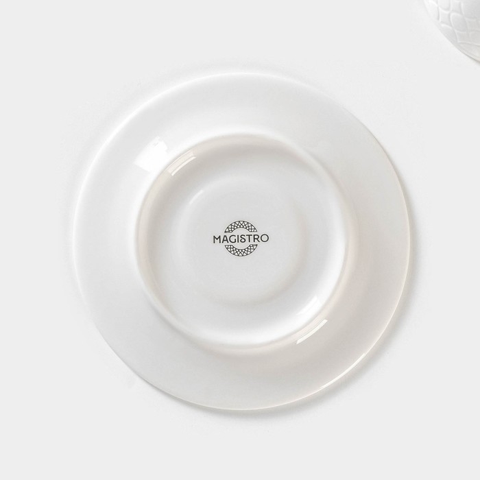 Чайная пара фарфоровая Magistro Argos, 2 предмета: чашка 220 мл, блюдце d=15 см, цвет белый