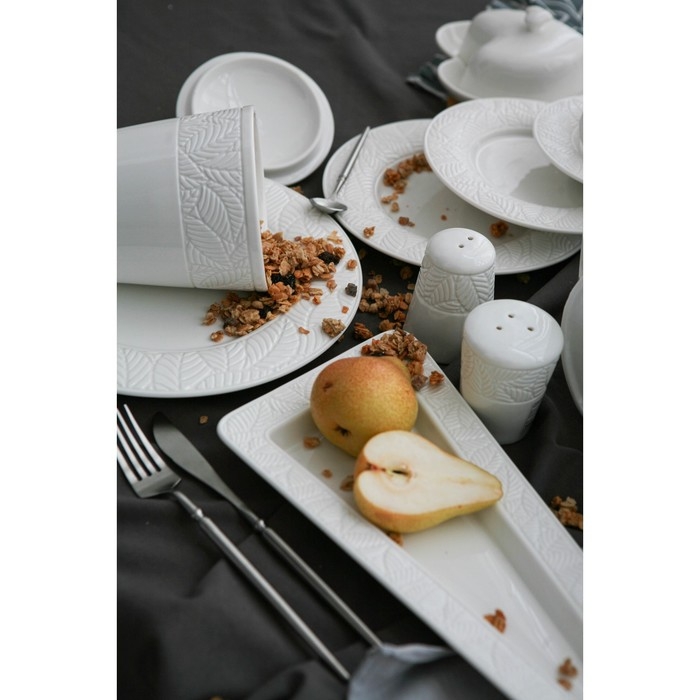 Посуда Magistro серии Сrotone – это безупречно изящная коллекция посуды из белоснежного фарфора, достойная украсить даже королевский стол. Традиционная форма изделий остается всегда актуальной и выглядит благородно. Рельефный узор в виде листьев выглядит особенно утончённо и придает посуде индивидуальности. Посуда Magistro Сrotone идеально впишется в любой современный интерьер!