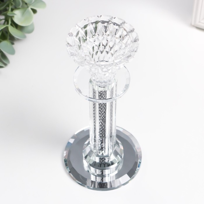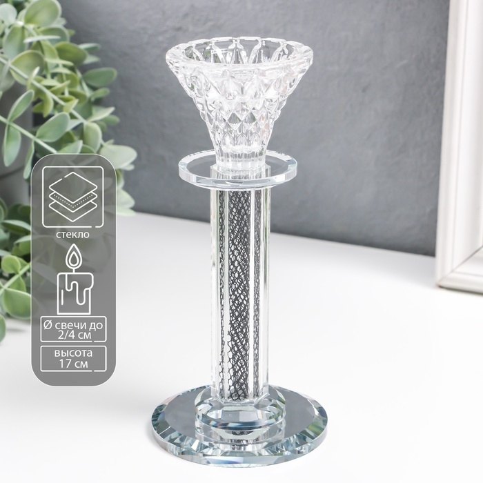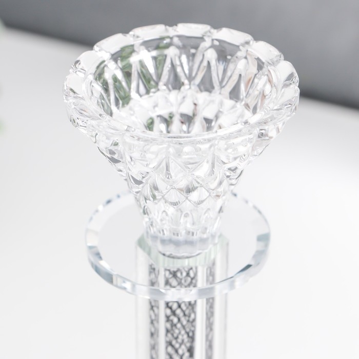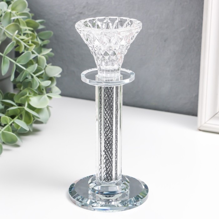 Подсвечник стекло на1 свечу "Узорный бутон" на ножке d=2 и 4 см 7,7х7,7х17 см