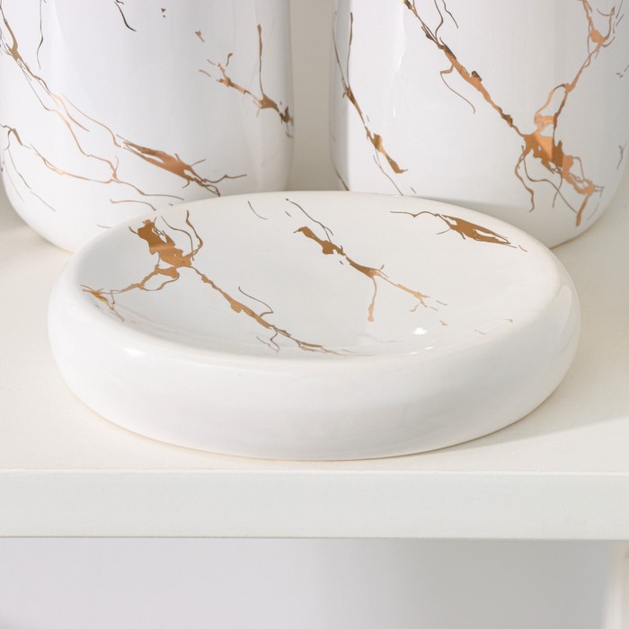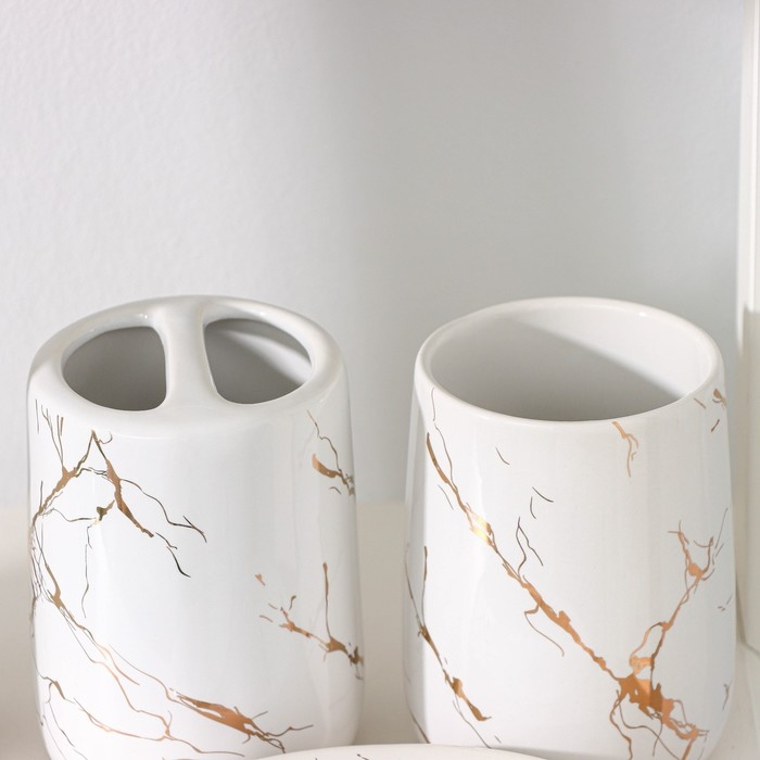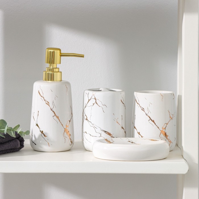Набор аксессуаров для ванной комнаты «Мрамор», 4 предмета (дозатор 190 мл, мыльница, 2 стакана 290 мл), цвет белый