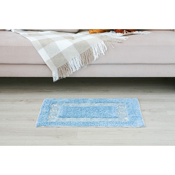 Коврик для дома Доляна «Вензель», 50×80 см, цвет голубой