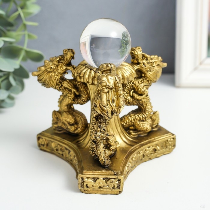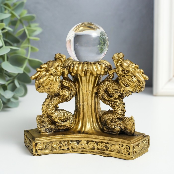 Нэцке полистоун под бронзу "3 дракона с шаром" 12х12х11