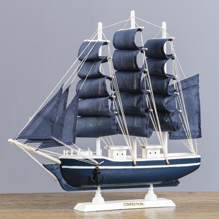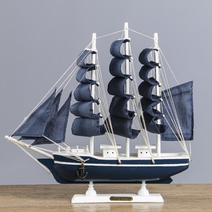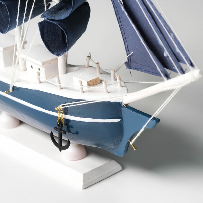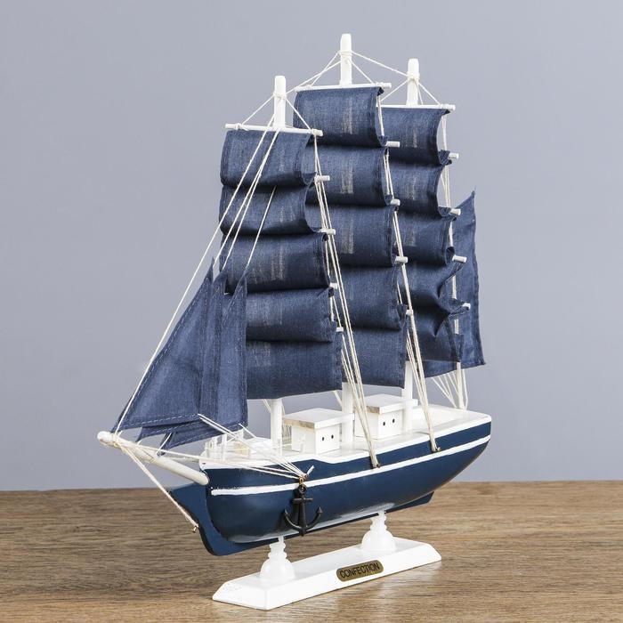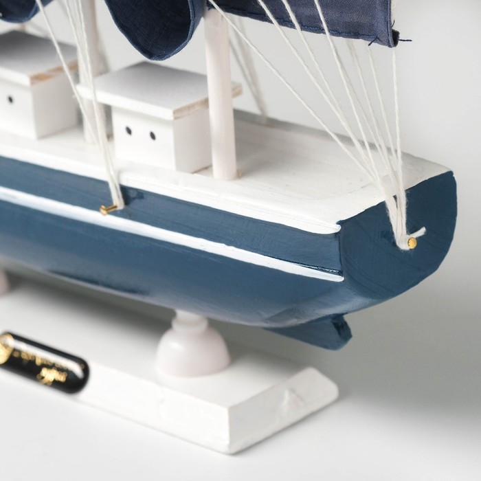 Корабль сувенирный средний «Калева», борта синие с белой полосой, паруса синие, 30х7х32 см