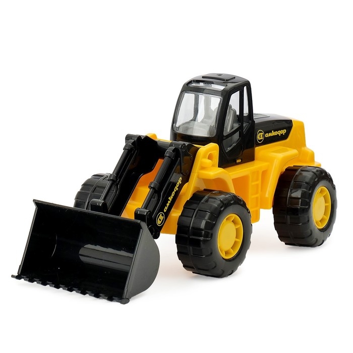 Трактор-погрузчик — незаменимая техника на любой ферме и стройке. Она оснащена широким ковшом для копания песка и мелких камушков. Такая игрушка подойдёт для развлечений дома и на улице.