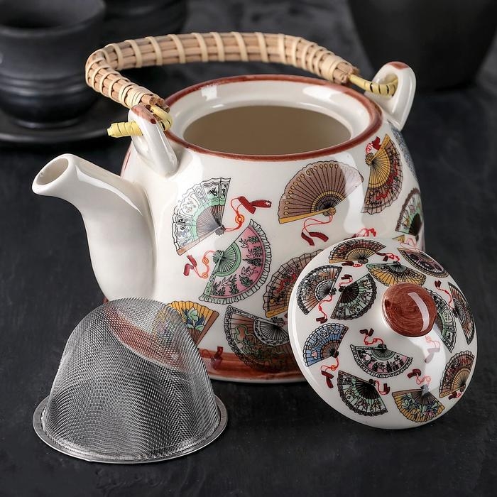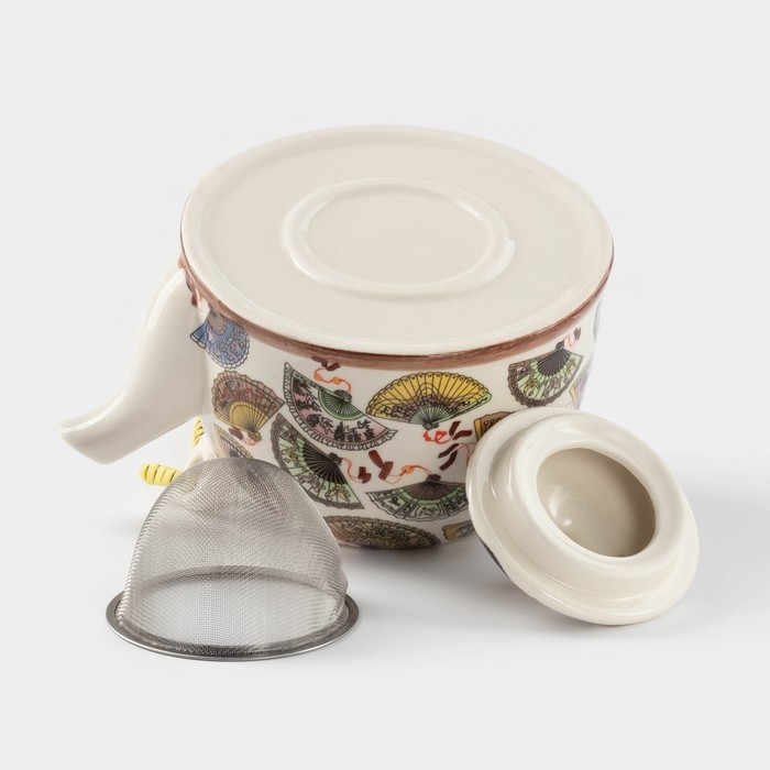 Чайник керамический заварочный с металлическим ситом «Веера», 900 мл
