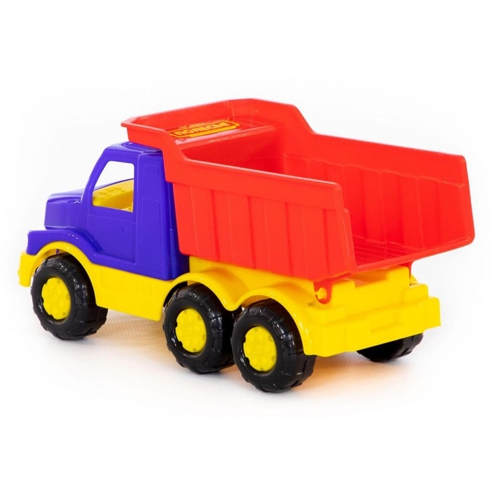 Самосвал ТМ «Полесье» порадует маленьких любителей спецтехники. Он оснащён вместительным кузовом, в который можно засыпать песок или камушки. Пластиковые колёса транспорта не поцарапают паркет или ламинат в квартире.