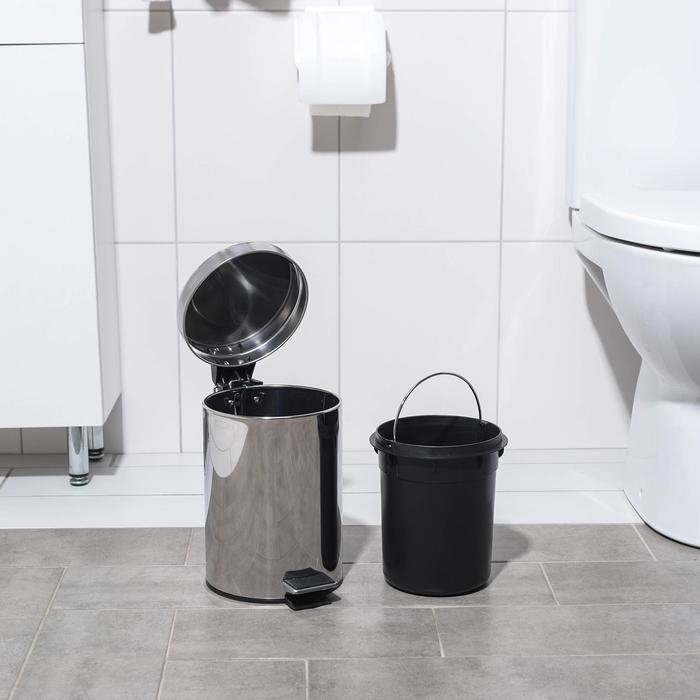 Ведро мусорное с педалью Доляна, 3 л, нержавеющая сталь, цвет хромированный