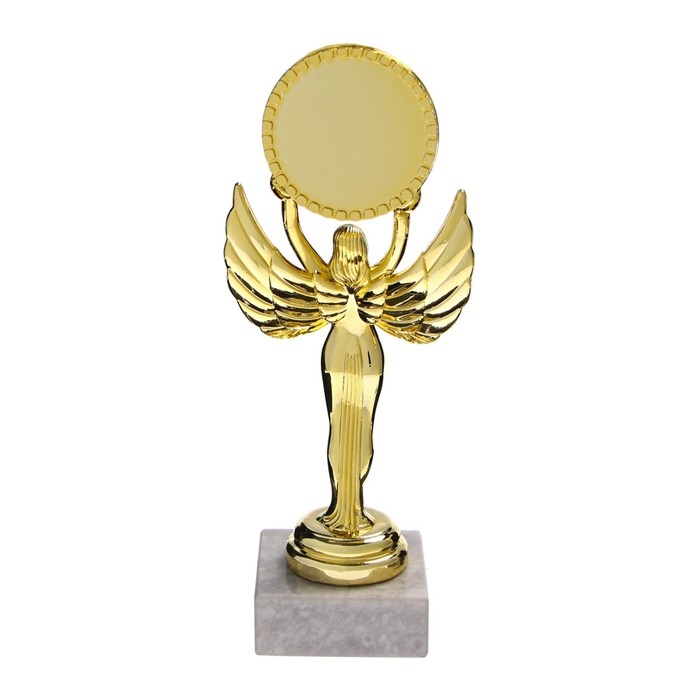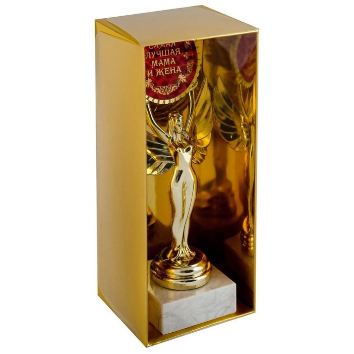 Фигура изготовлена из пластика, размещена на каменной подставке, вкладыш в медаль выполнен из фольги. Классический дизайн фигуры и торжественный золотой цвет станут отличным украшением церемонии награждения настоящего победителя и помогут ему почувствовать вкус заслуженной победы.