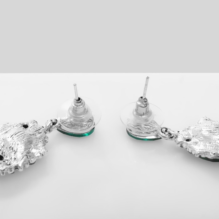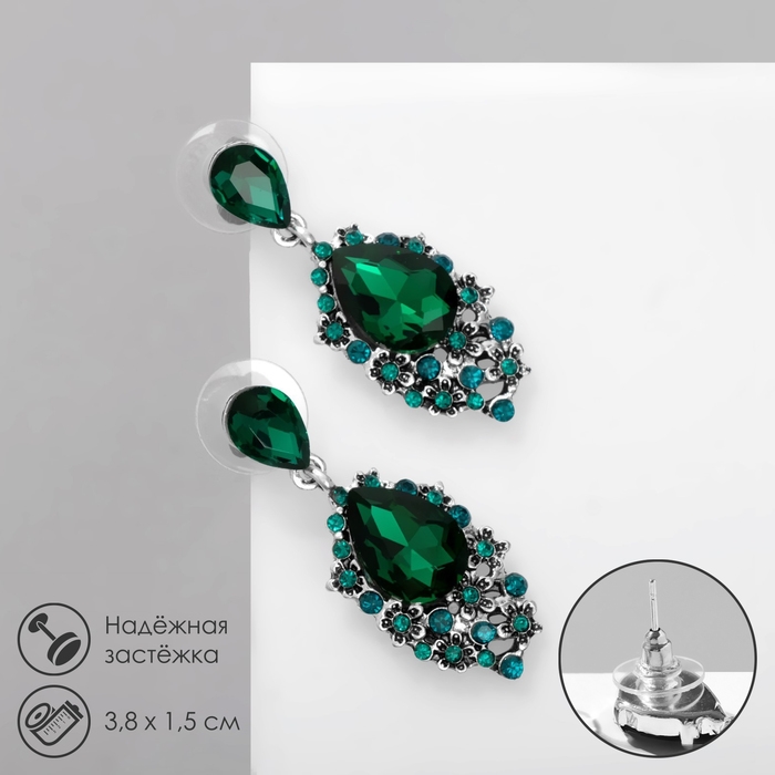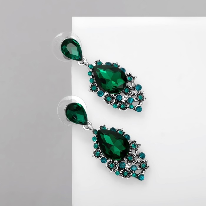 Серьги со стразами «Карнавал» шик, цвет зелёный в чернёном серебре