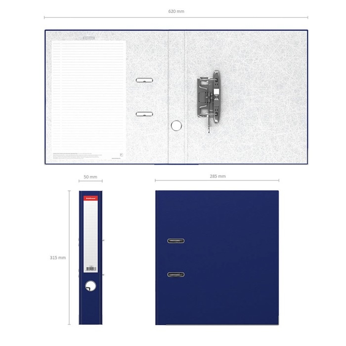 Папка-регистратор А4, 50 мм, ErichKrause Standard, бумвинил, с этикеткой на корешке, нижний металлический кант, синяя