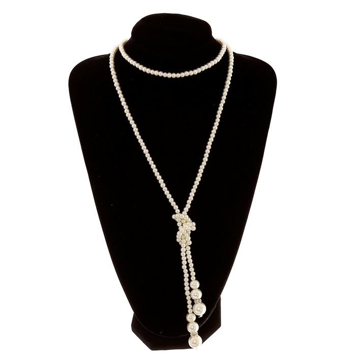 Бусы с жемчугом «Бусина» два ряда №4+6, цвет белый в серебре, 50 см