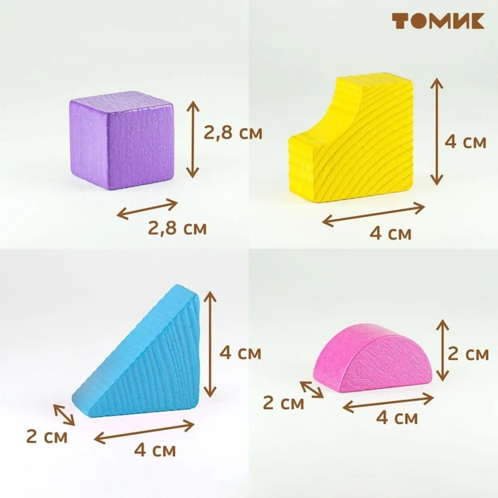 - сиреневый брусок (2,8 × 2,8 × 6 см), 4 шт.;