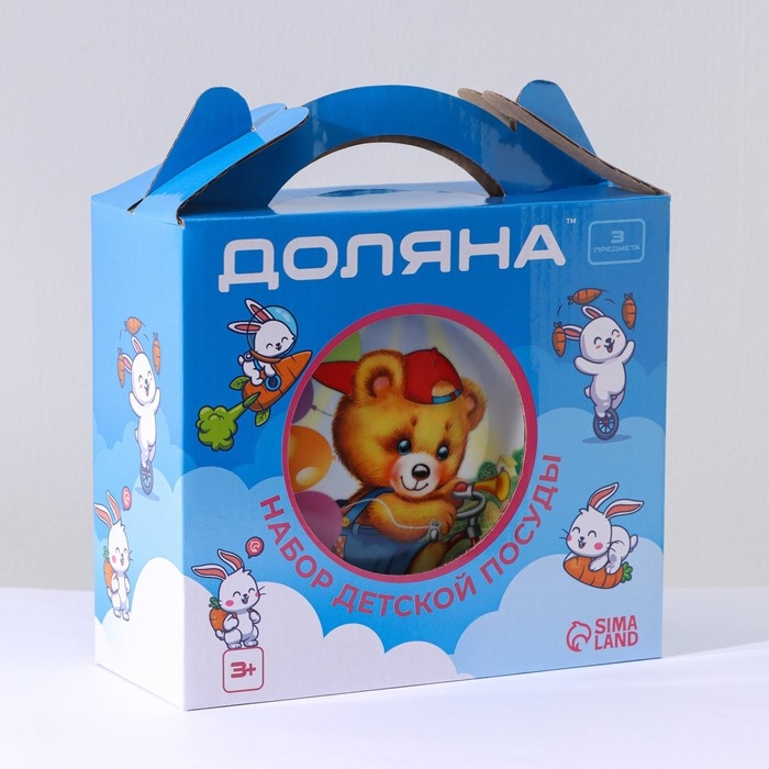 Набор детской посуды из керамики Доляна «Мишка на велосипеде», 3 предмета: кружка 230 мл, миска 400 мл, тарелка d=18 см