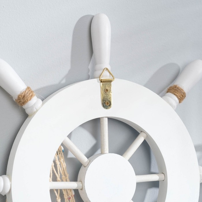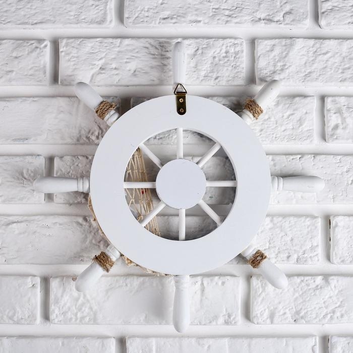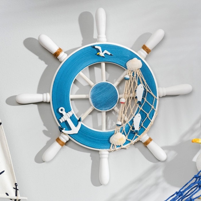 Декор интерьерный «Штурвал» на стену, бело-синий, 32 х 32 х 2 см
