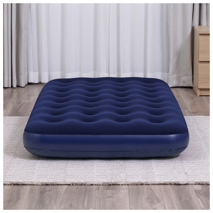 Когда нужно разместить гостей, но в доме нет лишнего спального места, вас выручит надувной матрас. Прочные перегородки внутри обеспечивают необходимую упругость. С велюрового покрытия, приятного на ощупь, не скатывается постельное бельё. Изделие имеет сдержанный дизайн, классическая расцветка позволяет ему хорошо вписаться в любой интерьер. Также данный матрас подходит для отдыха на природе.