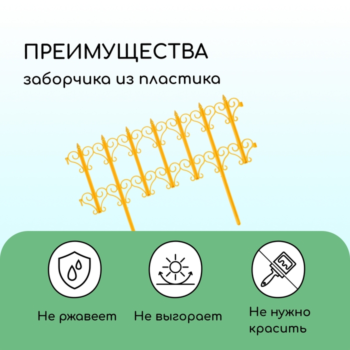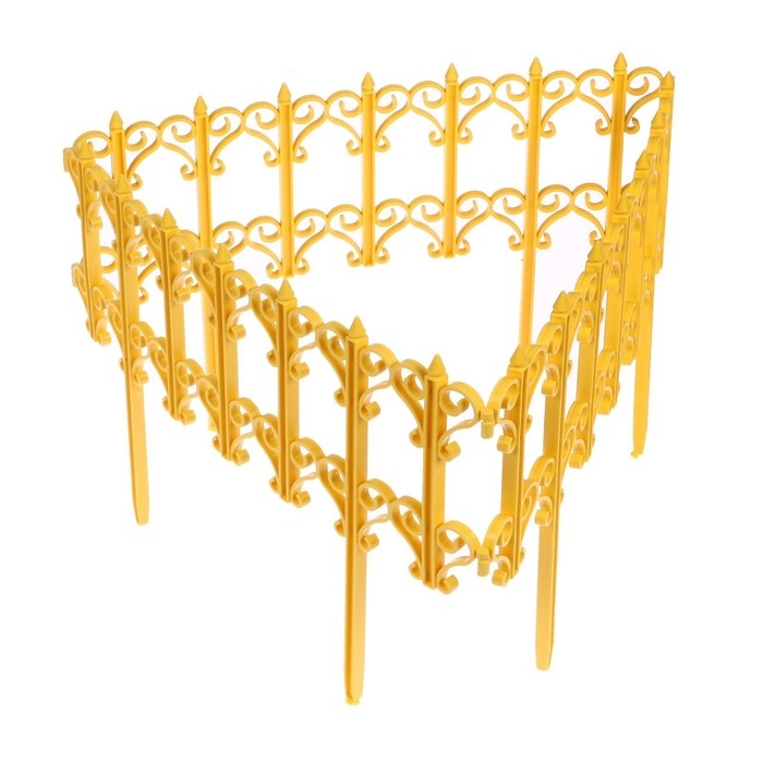 Ограждение декоративное, 25 × 180 см, 5 секций, пластик, жёлтое, «Классика»