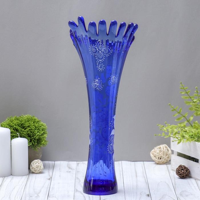 Ваза "Коралл" h 380 мм. из синего стекла (ручная роспись) рис. № 3 (Бел.) преобразит пространство и как самостоятельный элемент декора. Наполните интерьер уютом!