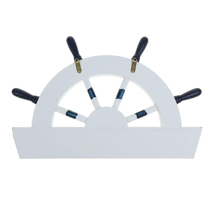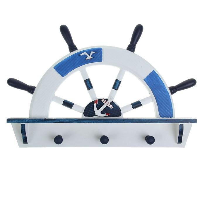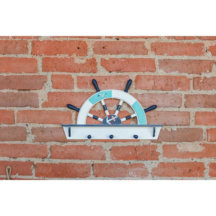 Вешалка интерьерная «Штурвал», 3 крючка, бело-синяя, 45 х 28 х 5 см