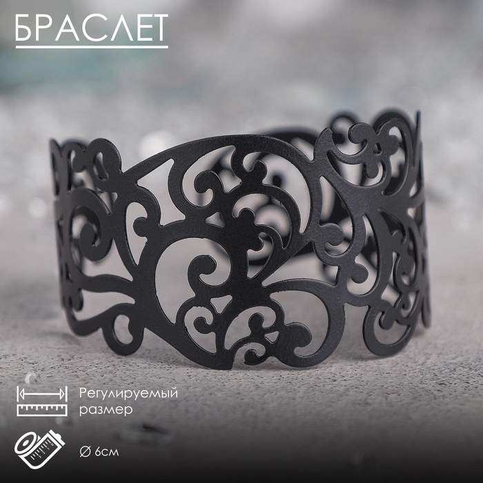 Браслет металл «Каркас» фэшн леди, узор, цвет чёрный, 6 см