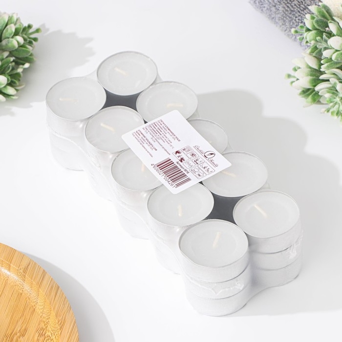 Набор чайных свечей, 3,8х1,6 см, 3,5 ч, 12 г, 30 штук, белый