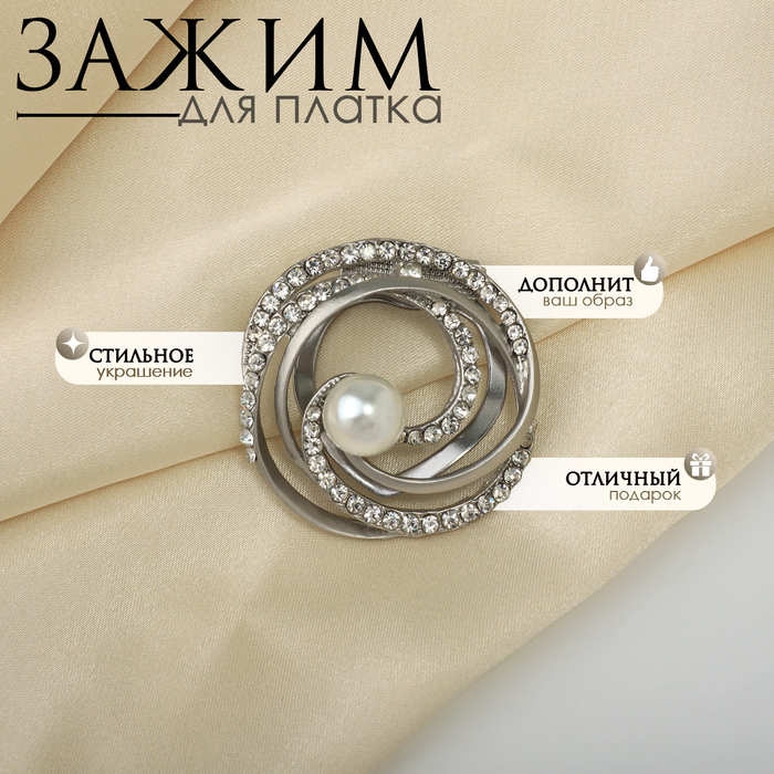 Зажим для платка «Жемчужинка», цвет серый в серебре