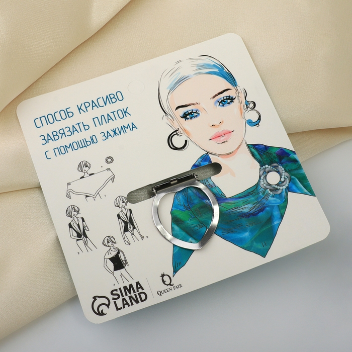 Зажим для платка представляет собой функциональное приспособление, которое крепится к платку, но не прокалывает его и не травмирует ткань. Подобные зажимы могут быть украшены различным оформлением. С помощью зажимов удобно фиксировать объёмные, длинные платки или роскошные палантины, они позволяют просто, быстро и надёжно зафиксировать платок или шарф, в том числе с целью создания нетривиальной драпировки.