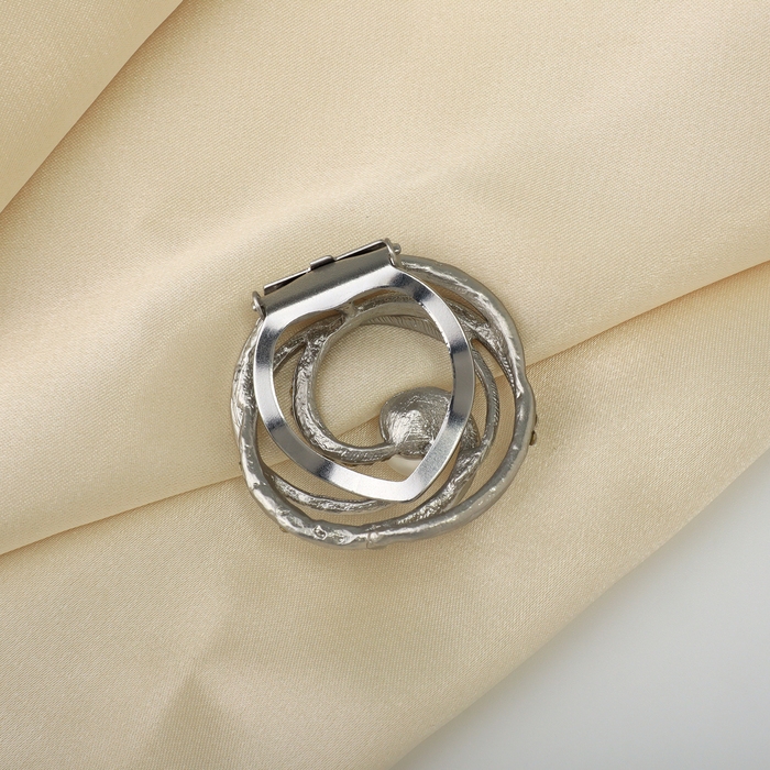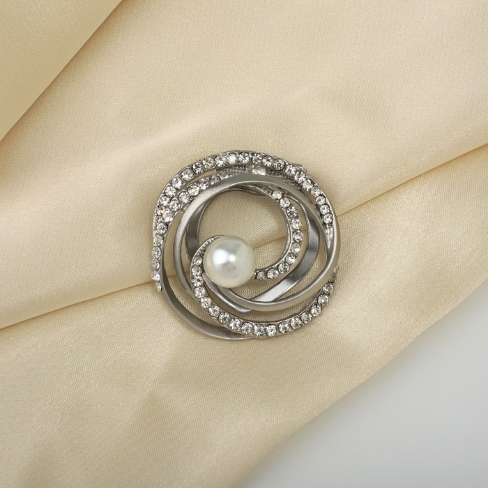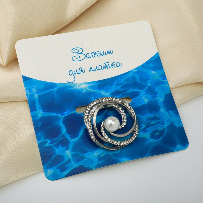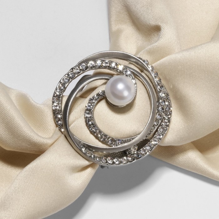 Зажим для платка «Жемчужный завиток», цвет белый в матовом серебре