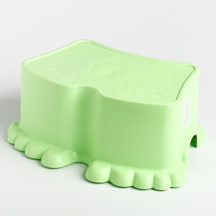 Рельефный узор в виде забавных пяточек, защитит ножки малыша от скольжения по поверхности табуретки-помощника.