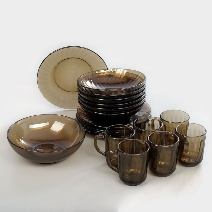 Набор тарелок стеклянных Доляна «Дольче», 19 предметов: 6 десертных тарелок, 6 обеденных тарелок, 6 мисок, салатник