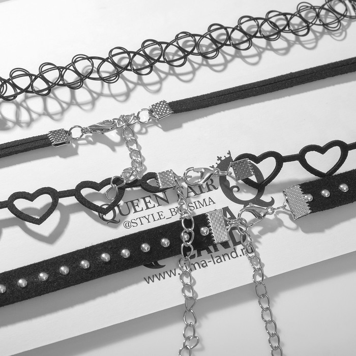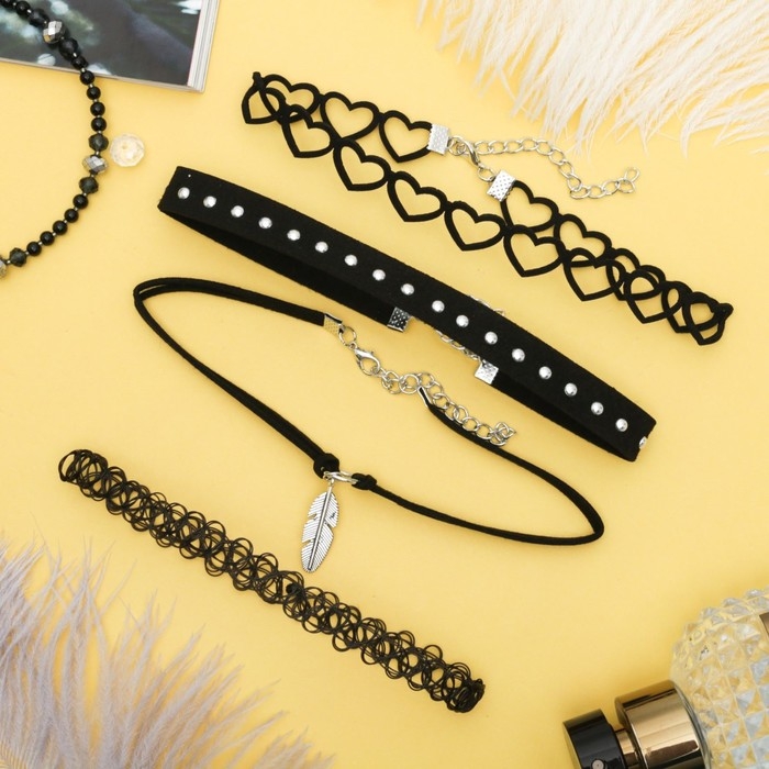 Чокер «Ассорти» романтика, (набор 4 шт.), цвет чёрно-серебряный, 30,5 см