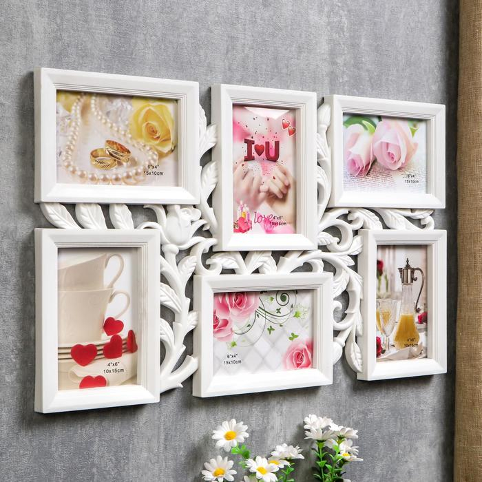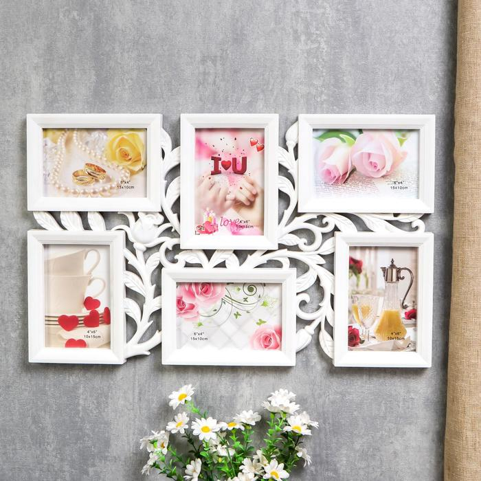Фоторамка пластик на 6 фото 10х15 см "Бутон" белая 52х32 см