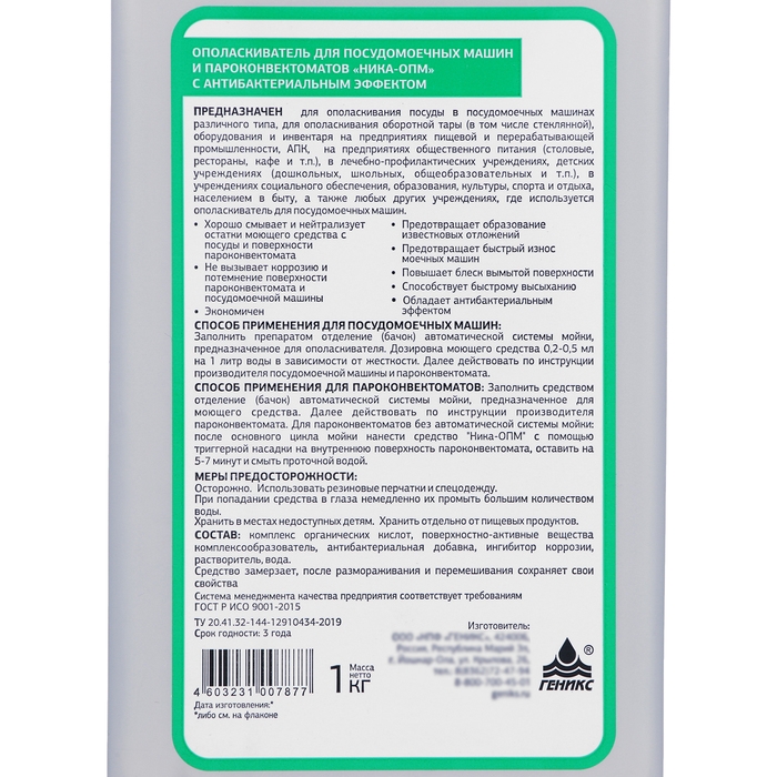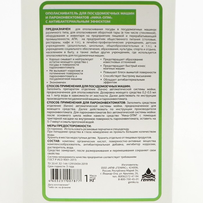 Ополаскиватель для посудомоечных машин и пароконвектоматов "Ника-опм", 1 кг