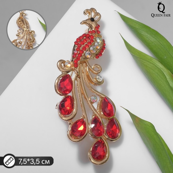 Брошь «Жар-птица» волшебная, цвет красный в золоте