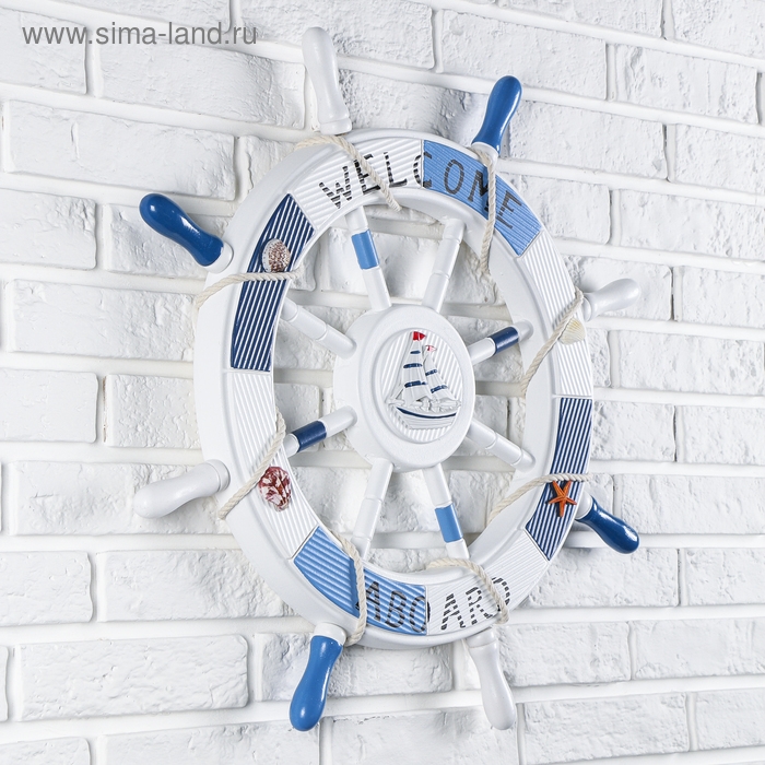 Штурвал Welcome aboard с корабликом 62*62*3,5 см