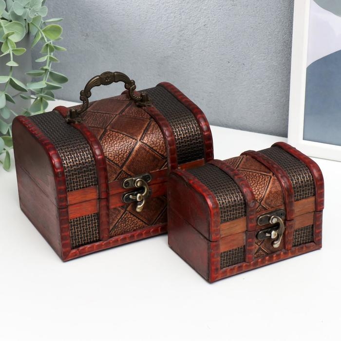 Шкатулка сундучок "Клетка и сеточка" набор 2 шт 7,5х11,5х7 см 10,5х15х11 см