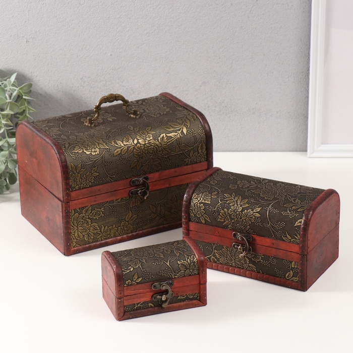 Шкатулка дерево сундучок "Цветущий сад и бабочки" набор 3 шт 8х14х6,5 11х18х12 15х22х16 см