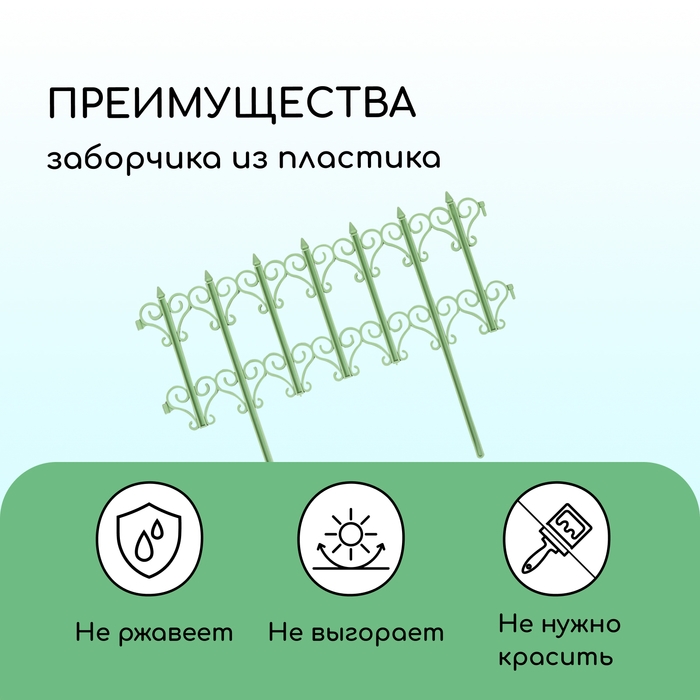 Ограждение декоративное, 25 × 180 см, 5 секций, пластик, салатовое, «Классика»